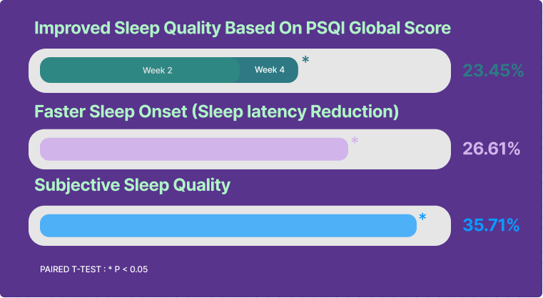 Daytime Functionality: The study found a significant reduction in daytime dysfunction, which improved by 23.61% by week 4 (p=0.007), allowing participants to feel more alert and productive during the day.